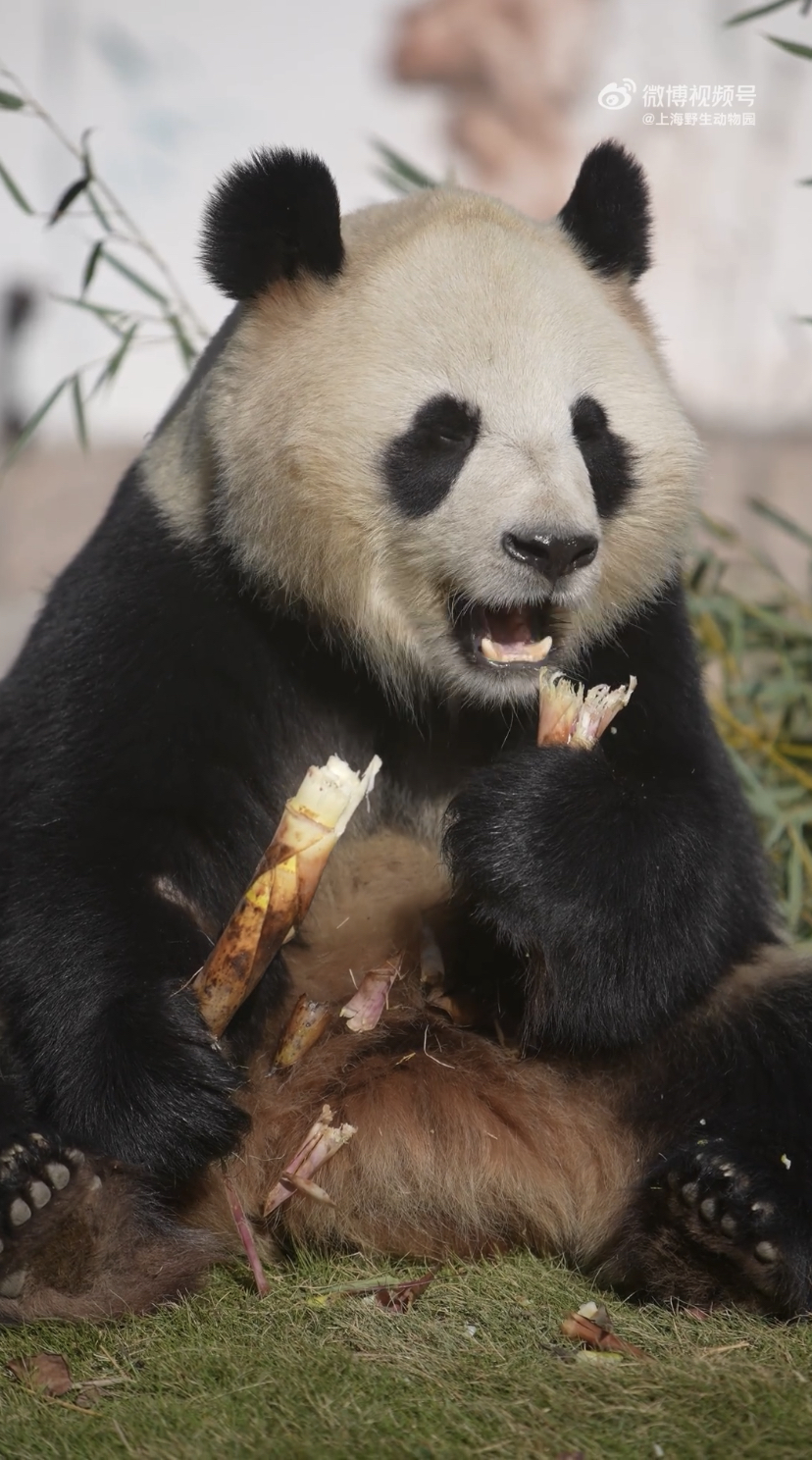 ▲大熊猫“七七”吃笋子。网上图片