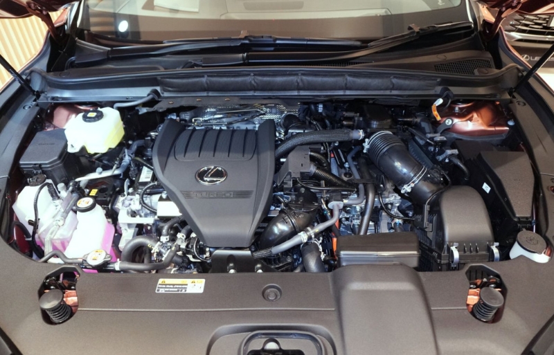 新款RX350采用全新2.4公升直四Dual VVT-i Turbo引擎,输出马力278ps、扭力43.8kgm,配搭8速Direct-Shift自动波箱及四驱,平均耗油量10.3km/L。 至于混能版RX500h同样搭载2.4公升直四Dual VVT-i Turbo引擎,前后轴另有各一个电马达辅助,车子综合马力高达371ps,配搭6速自动波箱及Direct4电子四驱,前后轴扭力分配可从70:30自动调校至20:80,平均耗油量为12km/L。