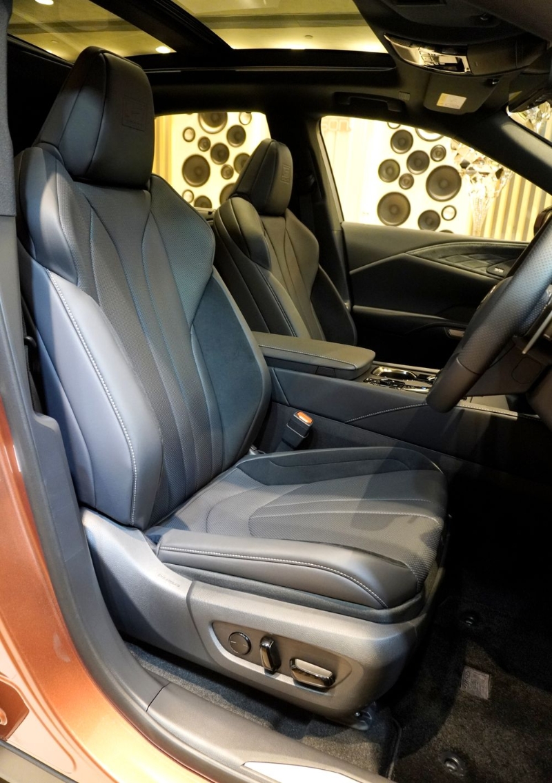 新款RX车厢陈设以Tazuna环绕驾驶舱为设计理念,前排内置电控调校及驾驶席记忆组合,后座椅背则备有电控角度调校,以及一按式覆折功能。 标准装备还有投射表板、14吋触控屏幕连语音控制导航及无线Apple CarPlay功能、ANC主动降噪、三区恒温冷气连Nanoe空气过滤系统、Qi无线充电器及全景式玻璃天窗等。 至于F Sport版另备专属大包围、21吋胎轲、辕盘+/-拨片、真皮桶椅及铝合金脚踏等。