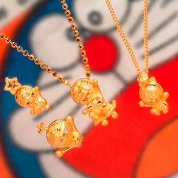 ▲不时推出新款卡通黄金饰品,如哆啦A梦以及美少女战士。