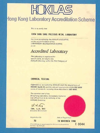 ▲1990年“周生生贵金属化验所”取得香港政府工业署属下,香港实验所认可计划的黄金成色检定资格,为香港商营机构第一家。