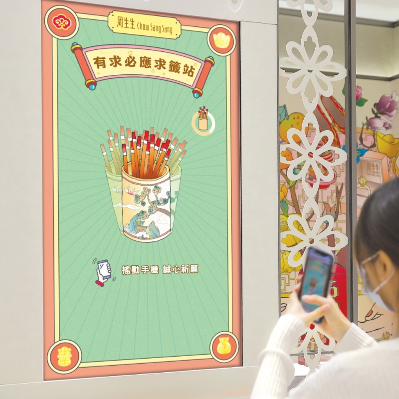 ▲店内充满黄大仙特色,特设“有求必应求签站”,让顾客求支好签