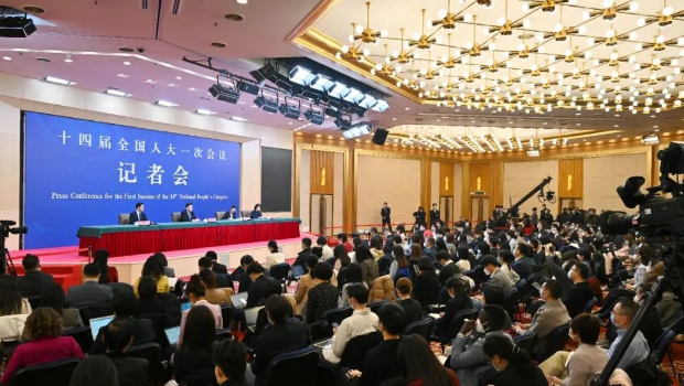 ▲3月7日,十四届全国人大一次会议在北京梅地亚中心多功能厅举行记者会,外交部长秦刚就“中国外交政策和对外关系”相关问题回答中外记者提问。新华社
