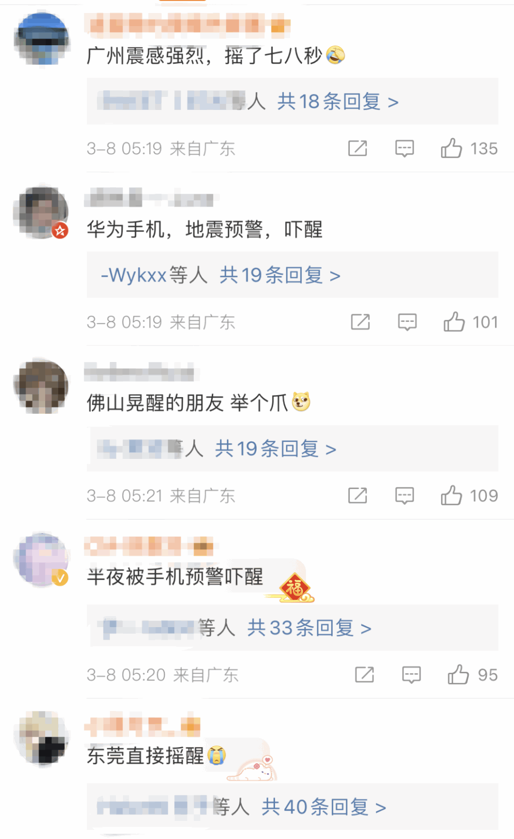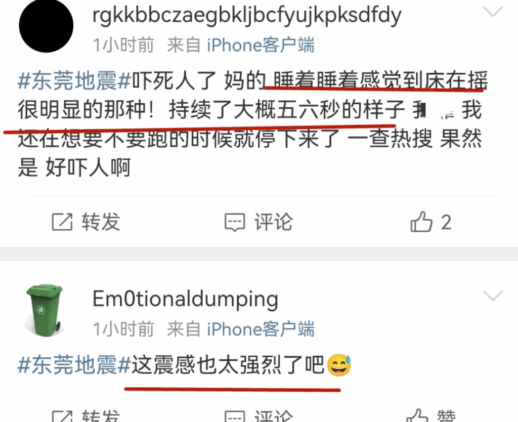 ▲广东多地网友表示有震感。