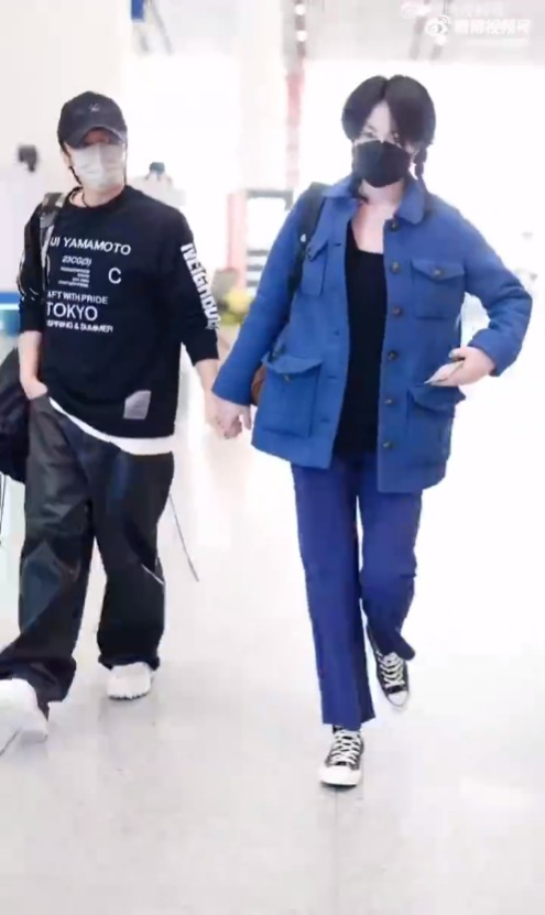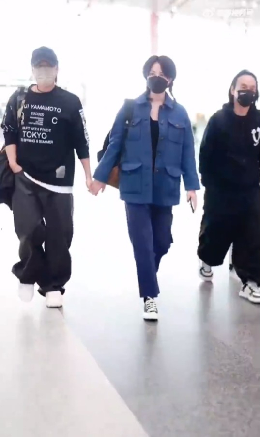 ▲王菲与谢霆锋罕有地拖手现身内地一机场,再现世纪拖手一幕。(微博图片)