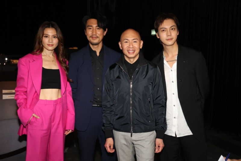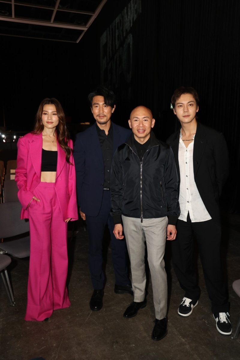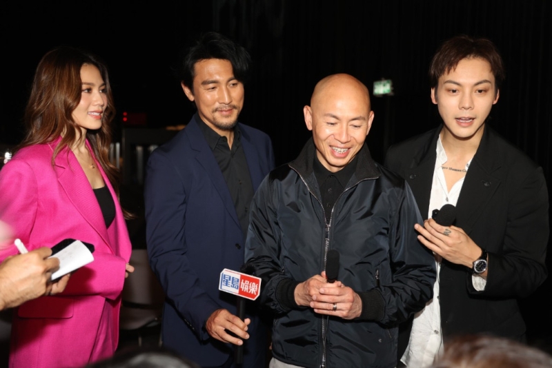 ▲电影《爆裂点》总导演及监制林超贤与陈伟霆(William)、周秀娜及谭俊彦受访。