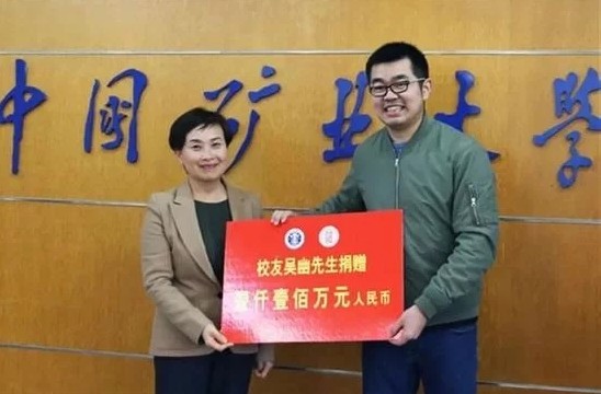 吴幽在社交网发声称,自己对中国矿业大学具有很深的情感。在偶然中,他通过一名校友与中国矿业大学教育基金会成员认识。2019年是中国矿业大学庆祝110周年校庆。那时他业务发展势头良好,校方曾提出,能否搞一个10年5000万的捐赠。但他觉得数额较大,便提出了捐款1100万元人民币,并与校方签署协议。