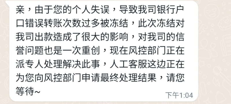 ▲后期林先生准备在博彩网提款时,网站诬陷他提款时错误输入个人资料,令网站花费大量人力物力处理事件,需要冻结户口。