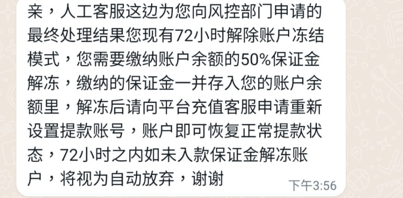 ▲博彩网其后要求林先生,在三天限期内再存入户口存款的百分之五十,作为“解冻金”。