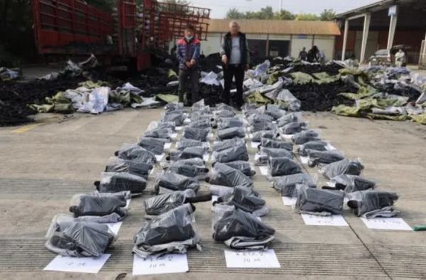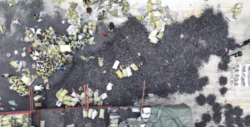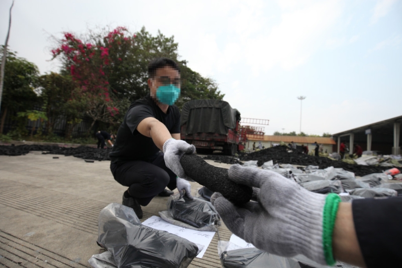 ▲缉毒人员花15小时清点了20吨炭,现场非常壮观。