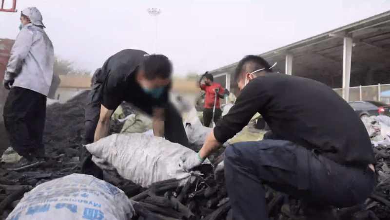 ▲毒品零散混杂在木炭中,靠人手逐一捡出。