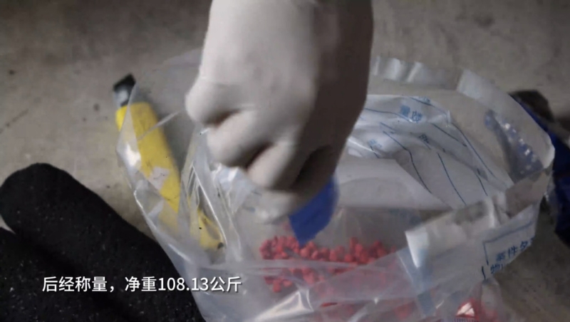 ▲缉毒人员共缴获108.13公斤冰毒。