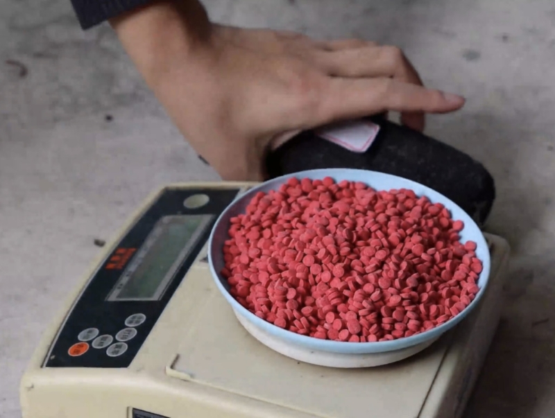 ▲收集到的毒品拿去秤重。