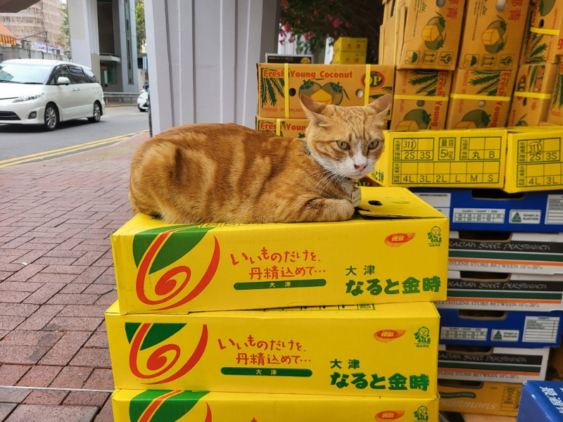 《腩二》属于放养猫,可能体型有点胖,平常不算太活跃,也不会随便乱走,活动范围主要在主人的蔬果店,又或在店铺对面摆设水果的街头角落,晒晒太阳睡睡懒觉,运动量极少,怪不得主人会贴出告示,劝喻街坊停止喂食,希望及时拯救《腩二》身型。