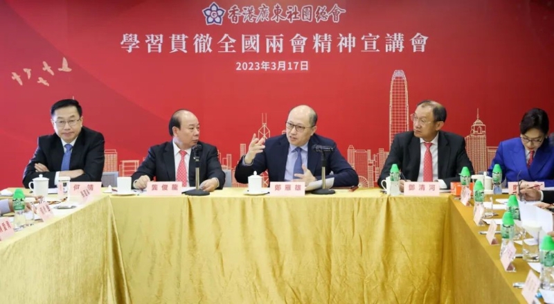 郑雁雄充分肯定了广东社团总会、福建社团联会为香港从由乱到治走向由治及兴新阶段作出的积极贡献。他强调,学习宣传贯彻好全国两会精神是当前和今后一个时期爱国爱港社团的重要政治任务,大家要充分发挥社团优势、充分发挥代表委员作用,走进社区基层,用市民能接受、听得懂的语言,有针对性地开展宣讲。