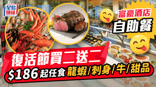 富豪酒店推出复活节快闪优惠,自助餐买二送二!富豪酒店旗下五间酒店以“缤纷复活节”为主题,呈献复活节自助午餐及自助晚餐“买二送二”网上快闪优惠,低至每位成人 HK$186 起,就可叹尽龙虾、刺身、蟹脚、牛扒、甜品!