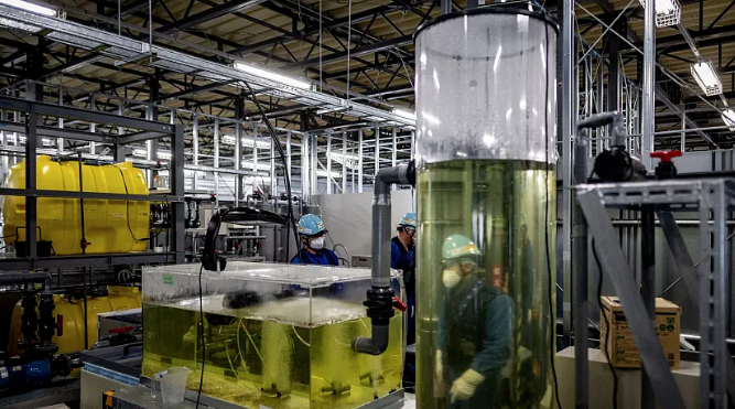 ▲工作人员在东京电力公司(TEPCO)福岛第一核电站的海洋生物饲养试验设施中工作。欧洲新闻网