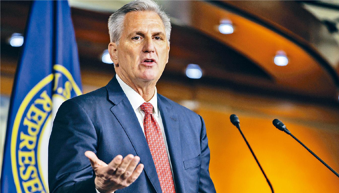 ▲众议院议长麦卡锡呼吁,即使特朗普被起诉或逮捕,支持者亦应保持冷静,不要进行暴力抗议。 法新社