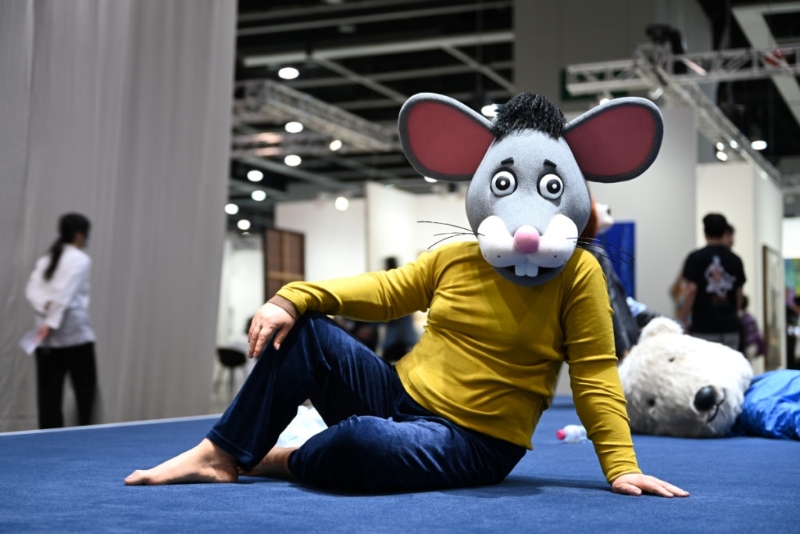 ▲《Art Basel香港2023》韩国艺术家金泓锡创作七个头戴动物面罩象征现代社会不同年龄和职业的人的《沉默的孤独》(EN7)