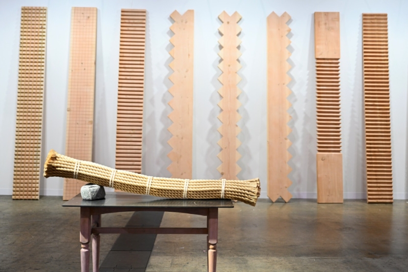 ▲《Art Basel香港2023》艺廊创办人冯榕榕(13aNewStreet):“艺术家小清水渐最喜欢用不同琢磨手法,去渲染木本身的本质。”