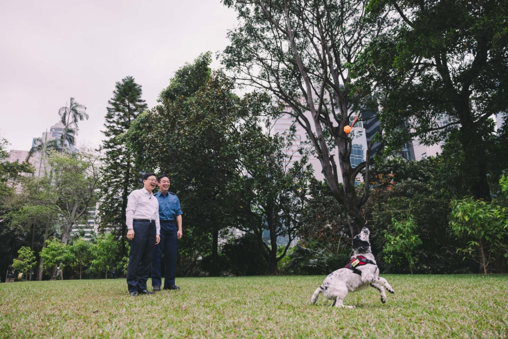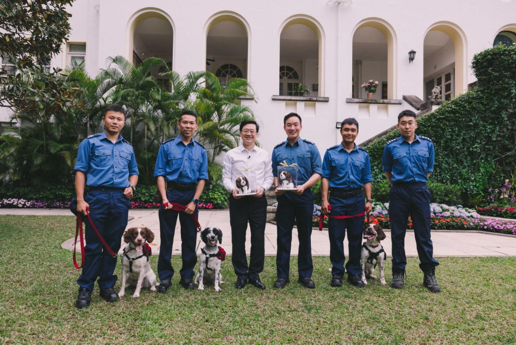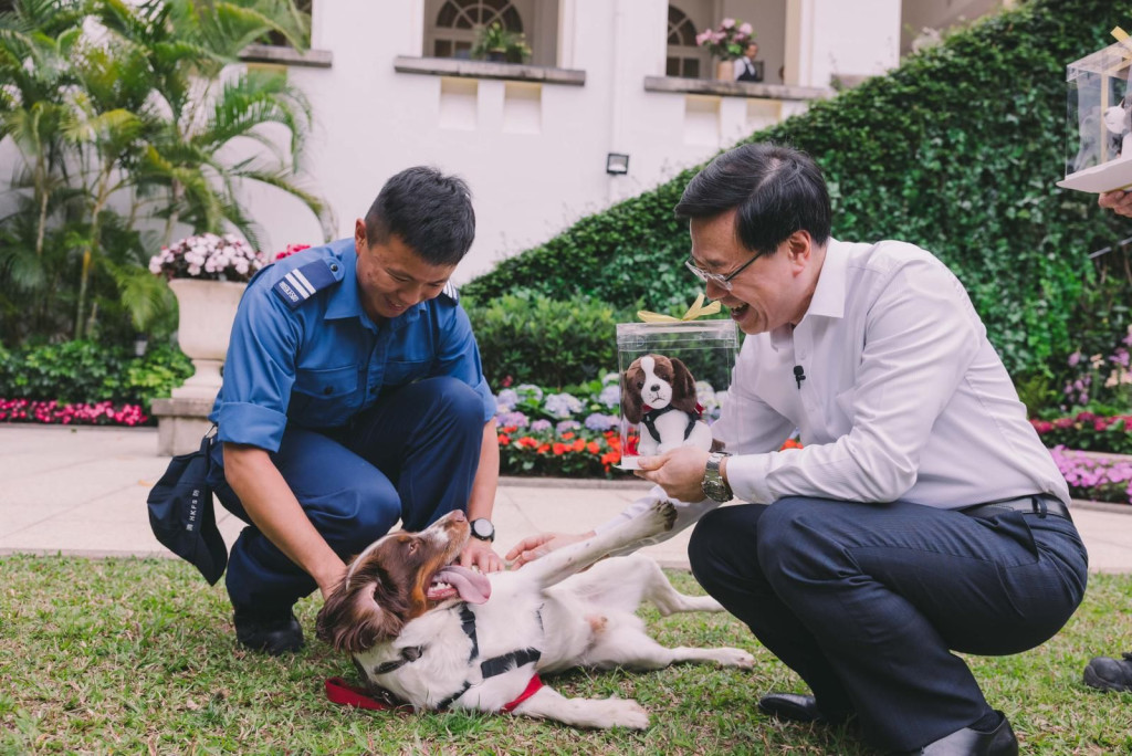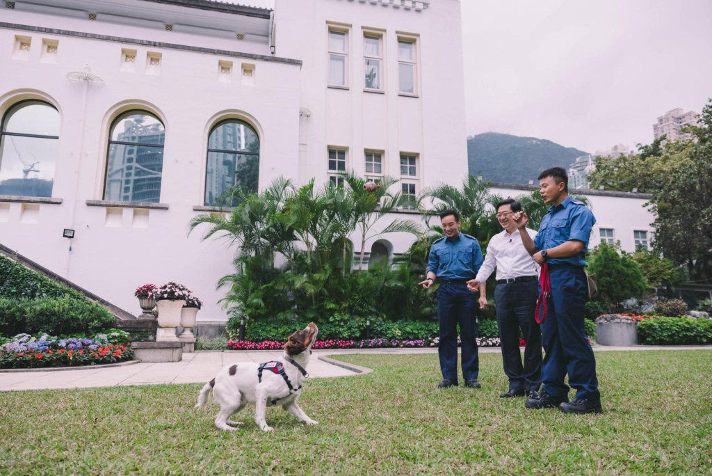 ▲李家超“宴请”消防搜救犬Twix、Umi和Umi的姊姊Uma到礼宾府作客。