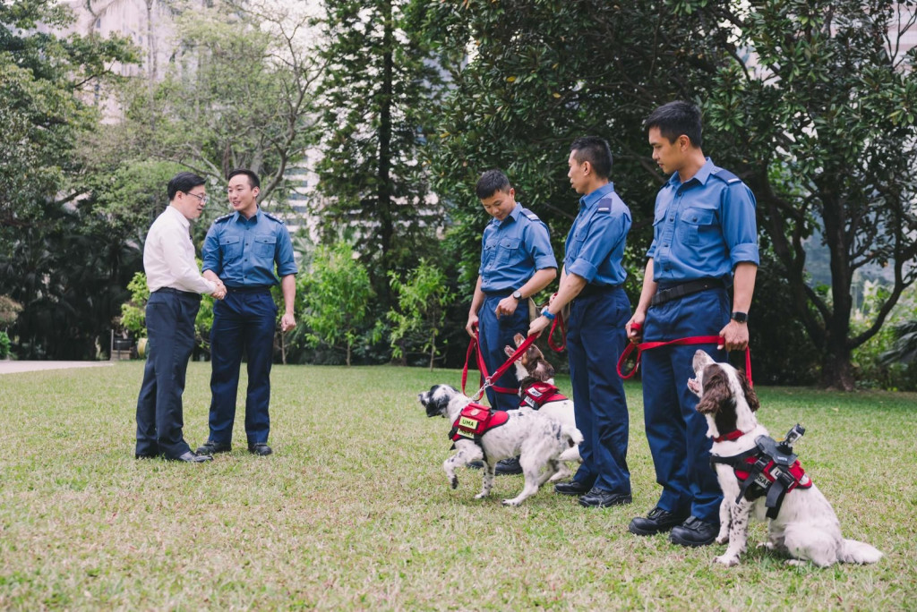 ▲李家超指消防搜救犬Twix和Umi的身体检查结果十分理想,可以继续执行职务。