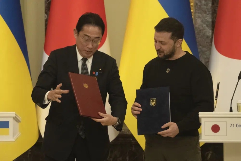 ▲日本首相岸田文雄与乌克兰总统泽连斯基于基辅会面。美联社