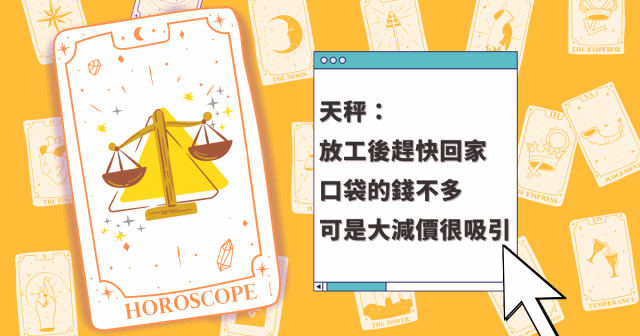 天秤:放工后赶快回家,口袋的钱不多,可是大减价很吸引。