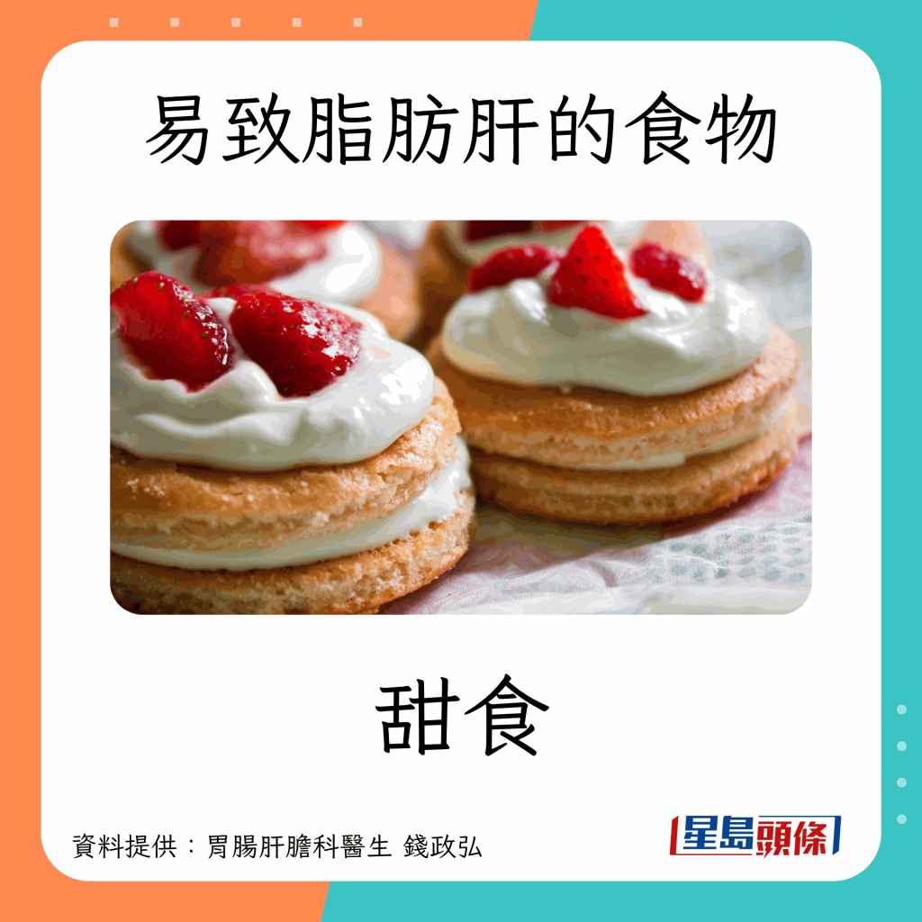 要维持肝脏健康,除了避免熬夜,亦要小心引发脂肪肝的食物。钱政弘医生曾撰文指出,脂肪肝是指油脂堆积在肝脏,不过原因是含糖的食物吃太多,而非油脂类食物吃太多。