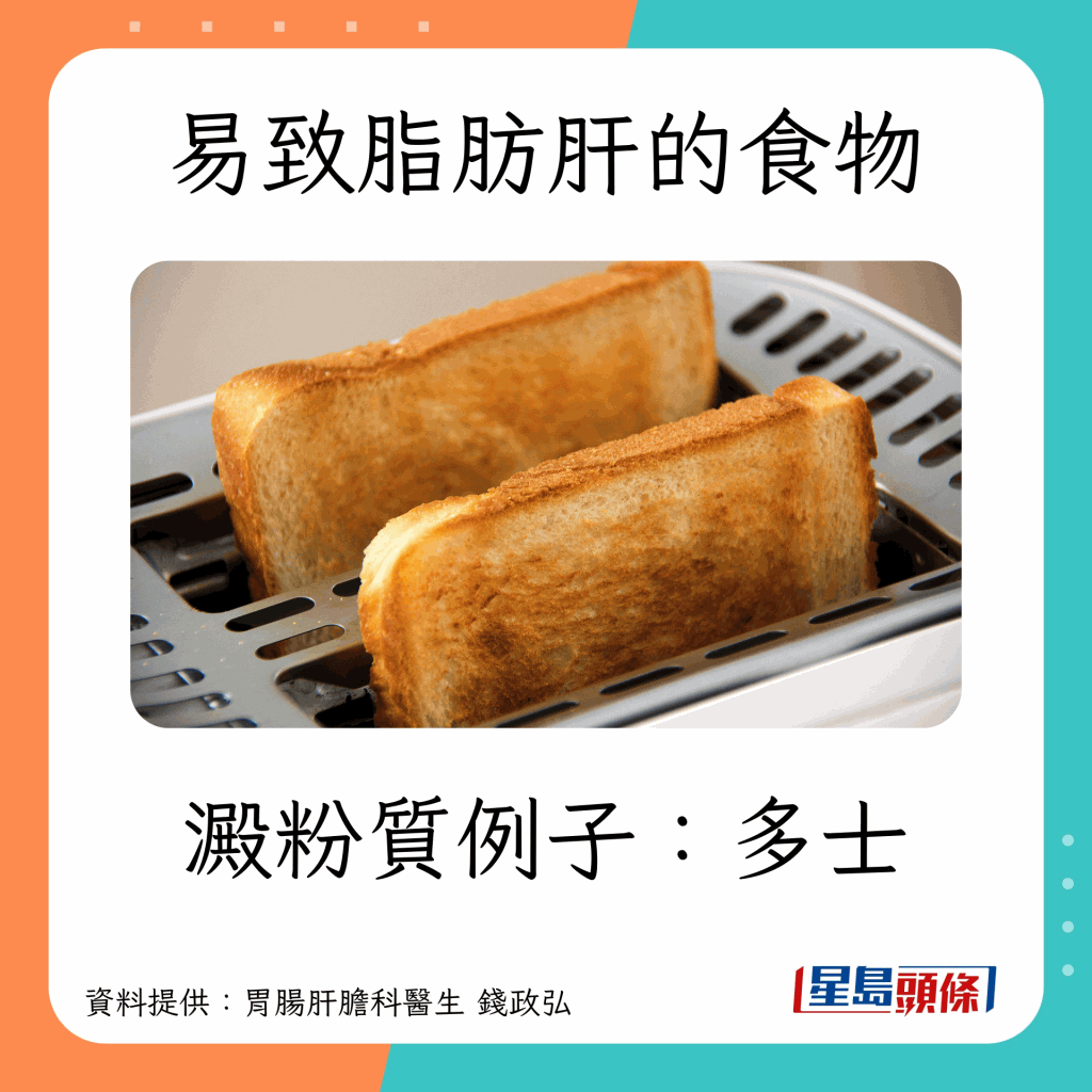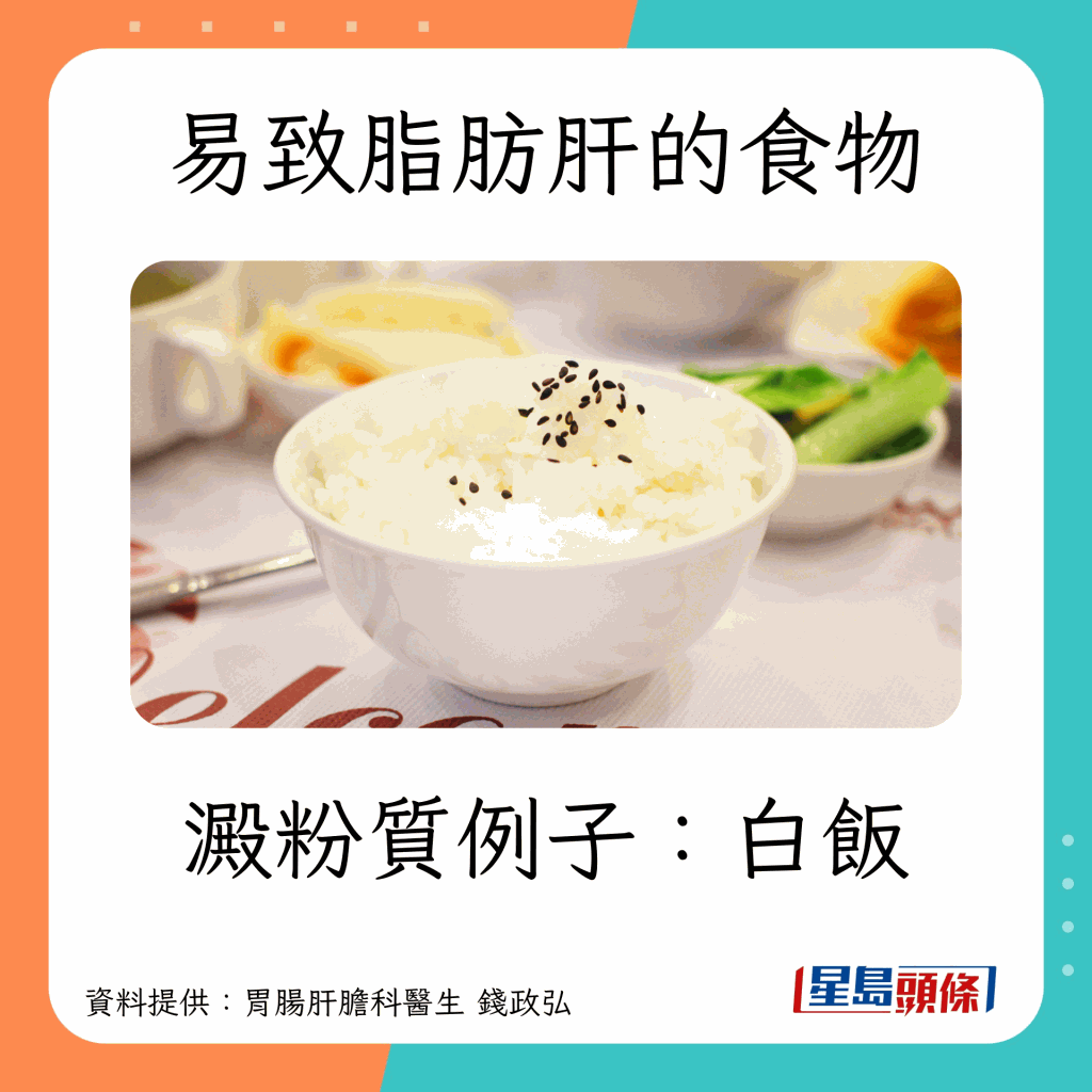 易引致脂肪肝的食物,除了含糖食物,还有淀粉质食物,例子如下: