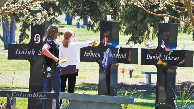 ▲由1999年科州科伦拜校园枪击案起计算,共有175人在15场大型枪击案中失去性命。图为科伦拜枪击案中遇难的13人纪念十字架。 美联社