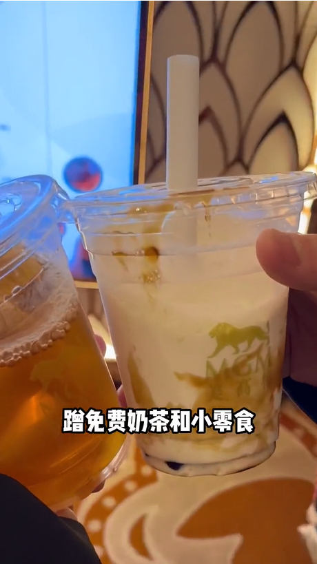 ▲再到美狮美高梅享用免费奶茶和小零食。