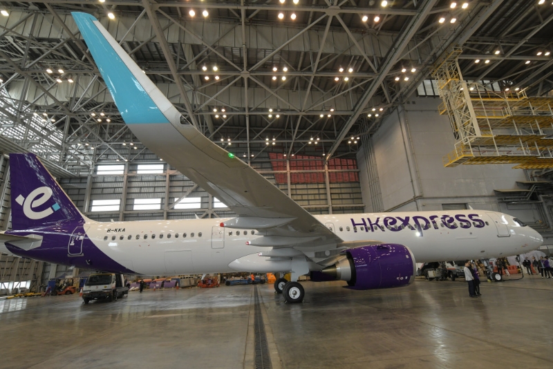 ▲HK Express已落实在未来两年接收16架空中巴士A321neo客机,而是次到港的为首架相关型号客机。 梁誉东摄