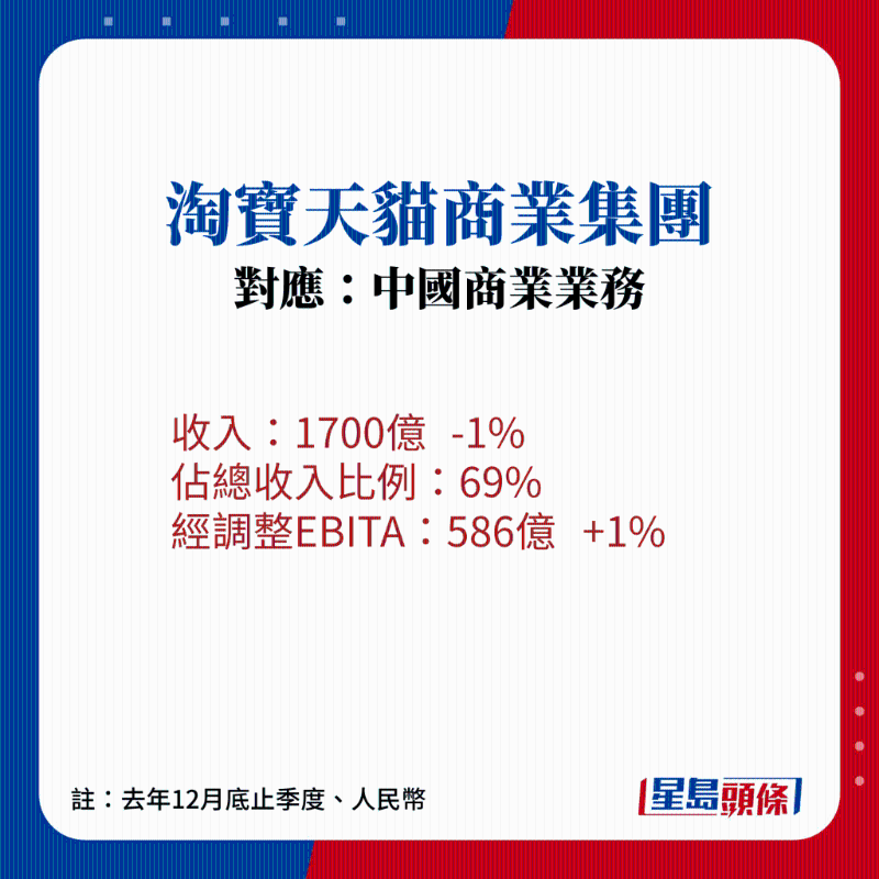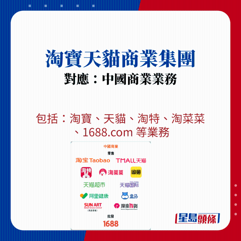 事实上,阿里在去年公布的业绩上,已清楚将这6大业务划分出来,分别是中国商业、国际商业、本地生活服务、菜鸟、云业务、以及数字媒体及娱乐,各自对应是次成立的6大业务集团。