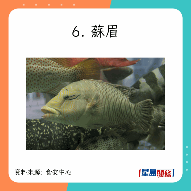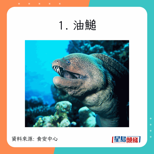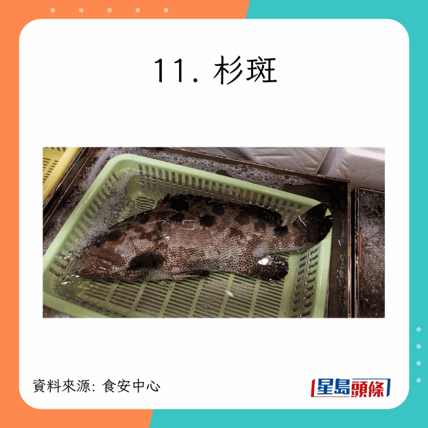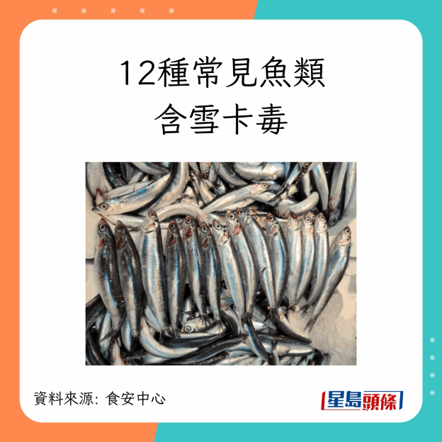 食安中心指,雪卡毒鱼类大多出现在热带及亚热带太平洋一带,而香港出售的活珊瑚鱼有不少是来自这些水域,情况并不罕见。其中有12种常见鱼类会含有雪卡毒素: