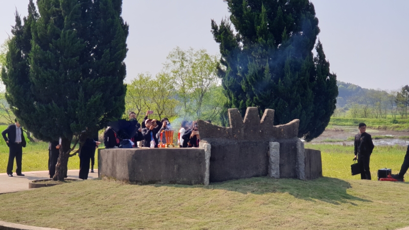 ▲马英九一行人抵达湘潭县茶恩寺镇双阳村的祖坟祭祖。