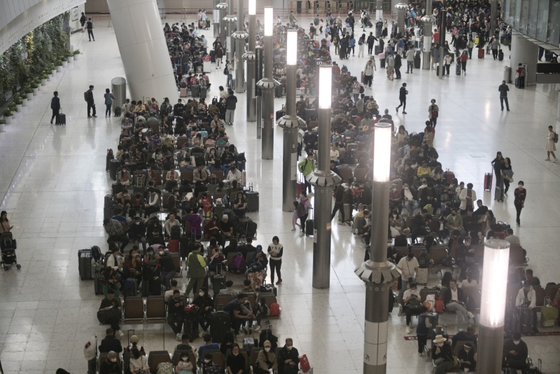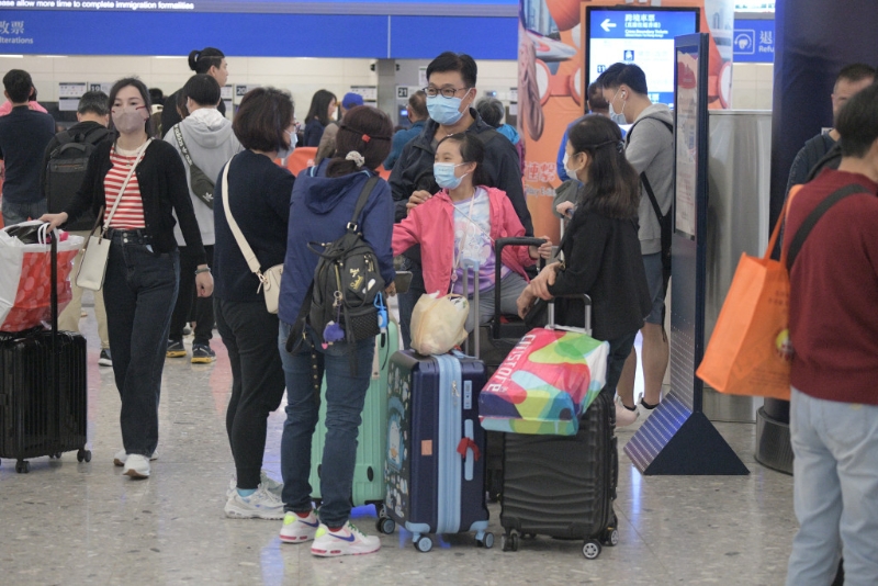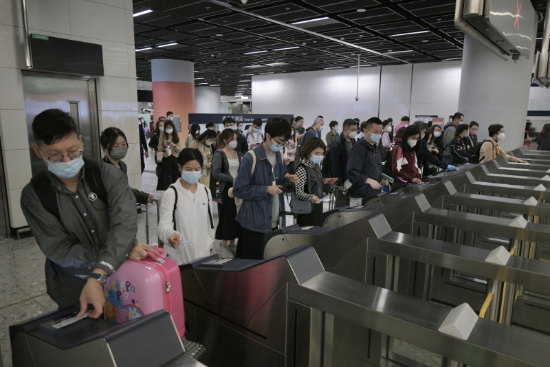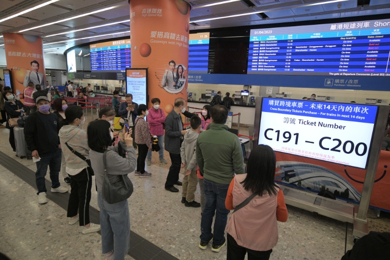 ▲高铁香港段重启跨省长途列车服务,大批市民出行迫爆车站。陈浩元摄