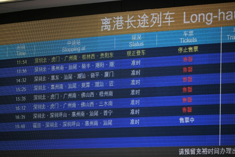 ▲部分北上长途班次的车票售罄。陈浩元摄
