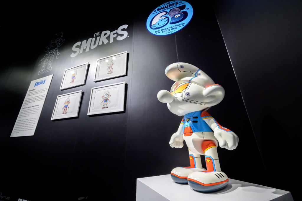 ▲“蓝精灵”与“大河原邦男”结合的模型。图片来源:海洋公园