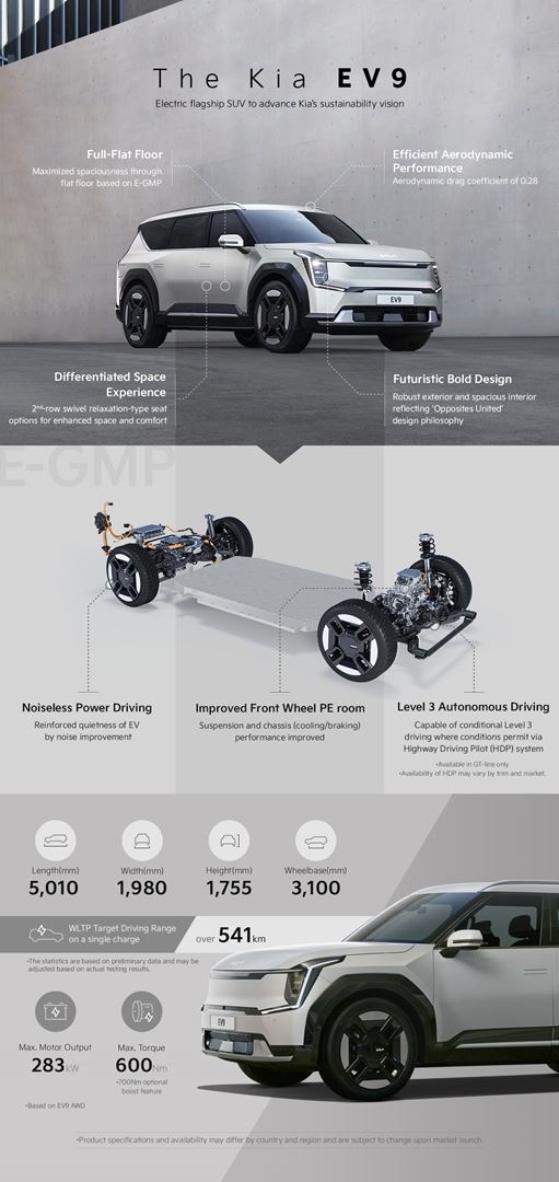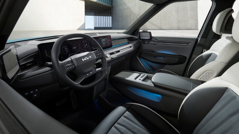 全平地台设计的EV9,车厢空间宽敞舒适。 当中,6座位版的中排双座可旋转面向第三排,并可以向侧便利行动不便乘客上落车。 跟同厂EV6一样,EV9也具备V2L(Vehicle To Load)外接供电功能,最大功率可达3.68kW。 至于日后推出的EV9 GT-Line版本,还配置了高速公路自动驾驶系统(HDP),具备Level 3自驾功能。