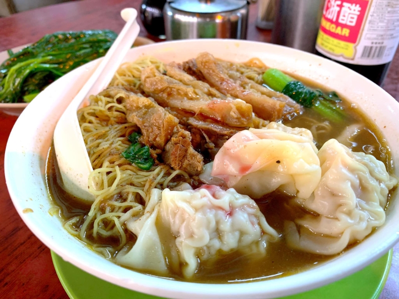 说的就是元朗的学记面家,开业至今已超过70年历史,目前位于区内熟食市场,亦是目前香港买少见少的大排档格局。 纵然熟食市场没有冷气,夏天时帮衬定必吃得“身水身汗”。 不过,学记仍然得到不少街坊捧场,一碗牛腩云吞面,一碟通菜,一瓶汽水,似乎都是食客们的“指定菜式”。