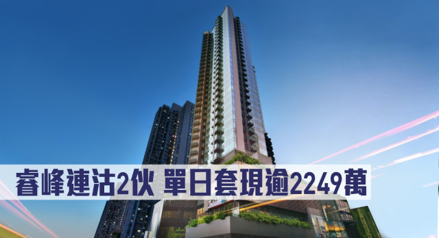鼎珮集团持有的长沙湾睿峰,受本港多项利好因素带动下,踏入4月销情节节攀升,首5日共沽出6伙,今日再录2宗成交,同属两房间隔,涉及东翼26楼B单位,面积439方呎,以超过1048万成交,呎价23875元;另一成交为东翼33楼D室,面积499方呎,以超过1200万成交,呎价高达24072元。
