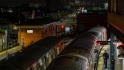 ▲男子坐在自携沙发在月台上等列车。影片截图
