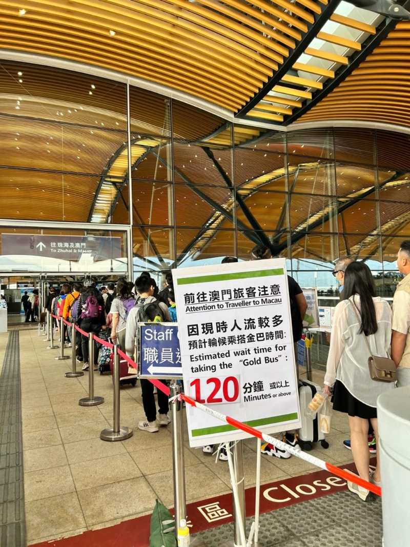 但并不代表到达口岸那一刻起,算上120分钟就能登上“金巴”。据现场游客描述,于11点左右到达口岸,花费一个多小时才能过关,然后排队领取“金巴”车票,这时候才开始等候120分钟。