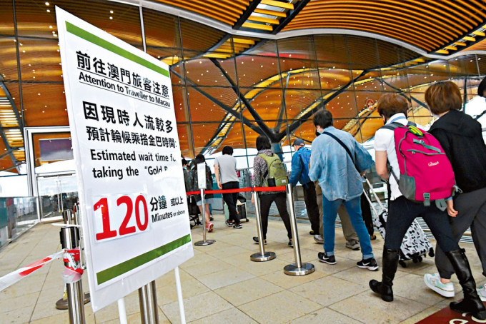 ▲前往澳门旅客甚多,预计乘搭金巴一度需时2句钟。