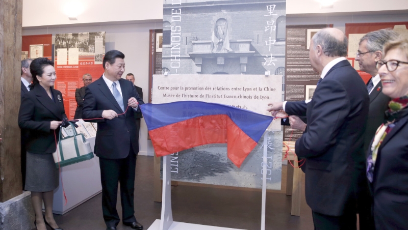 ▲习近平和夫人2014年参观里昂中法大学旧址。