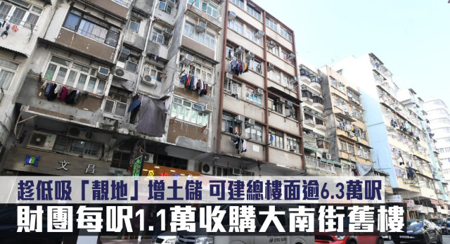 上述位于大南街111至125号的一列旧楼群,涉及约5幢楼高4至8层的商住旧楼,地下为商铺,楼上为住宅。据了解,上述财团以每方尺1.1万至1.3万不等向小业主提出收购建议。若小业主同意收购并签署临时买卖合约,相关财团于本月中旬或之前会向卖家先支付5万作为临时订金,于5月初或之前签署正式买卖合约会支付楼价约10%减去已付的临时订金,以作为大订,余款楼价约90%则于8月底或之前支付。