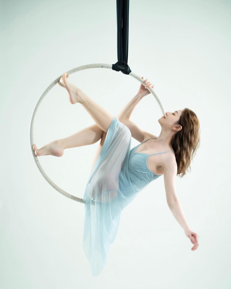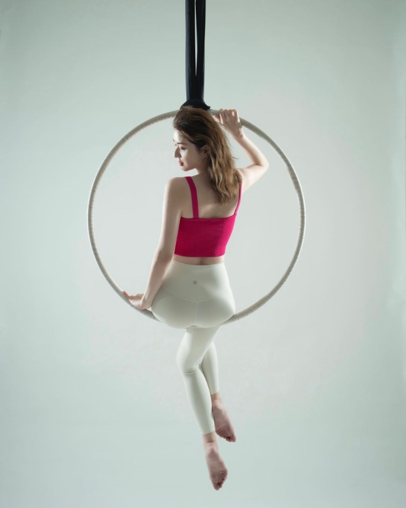 ▲昨日(10日)徐淑敏在IG连晒多张玩空中呼拉圈的照片,身穿桃红色小背心配紧身裤,坐在空中呼拉圈上背向镜头,除了展示了腰部线条,更见她的迷人翘臀。