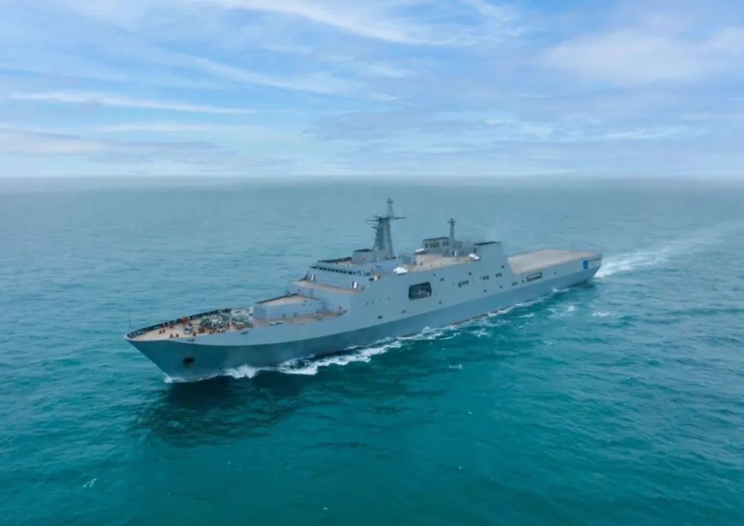 泰国皇家海军4月10日证实,泰国军方代表在上海沪东中华造船厂接收071ET型船坞登陆舰。泰国《曼谷邮报》援引泰国皇家海军 (RTN) 的介绍称,这艘作为潜艇补给舰的新型护卫舰计划于4月27日抵达泰国。随着交付证书的签署,071ET舰成为东南亚地区最大的现役军舰。