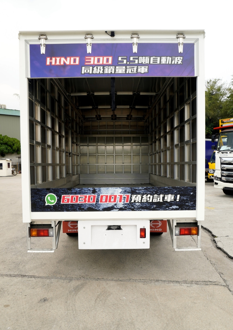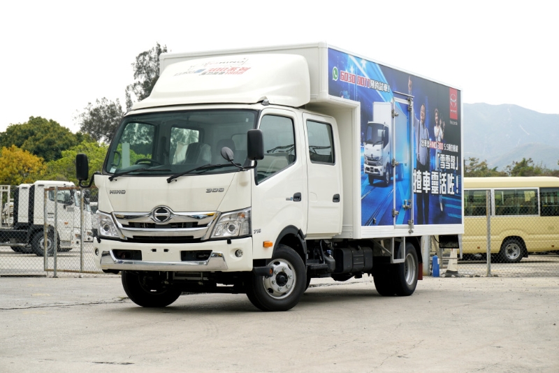 日野(Hino)300系列轻型货车5.5吨低床版本,短小精悍车身适合穿梭狭窄街道,很适合香港地理环境,而且拥有超过2吨负重能力,更可以加装冷藏斗及电动尾板。